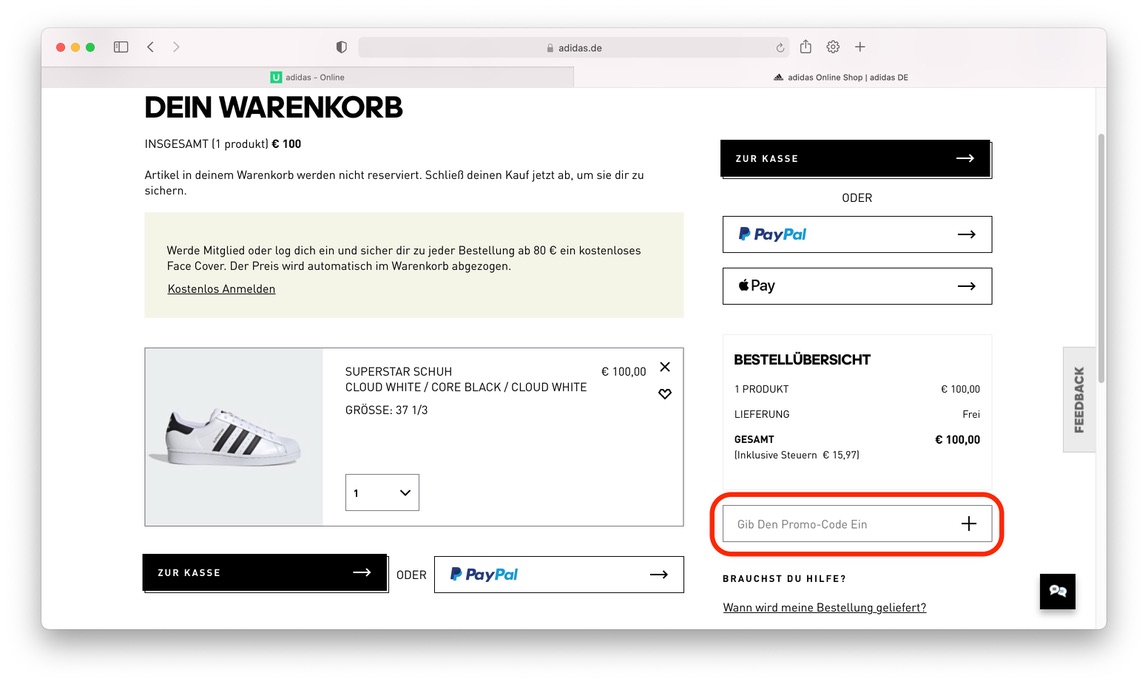 여기서 „Jetzt einlösen“을 누르면