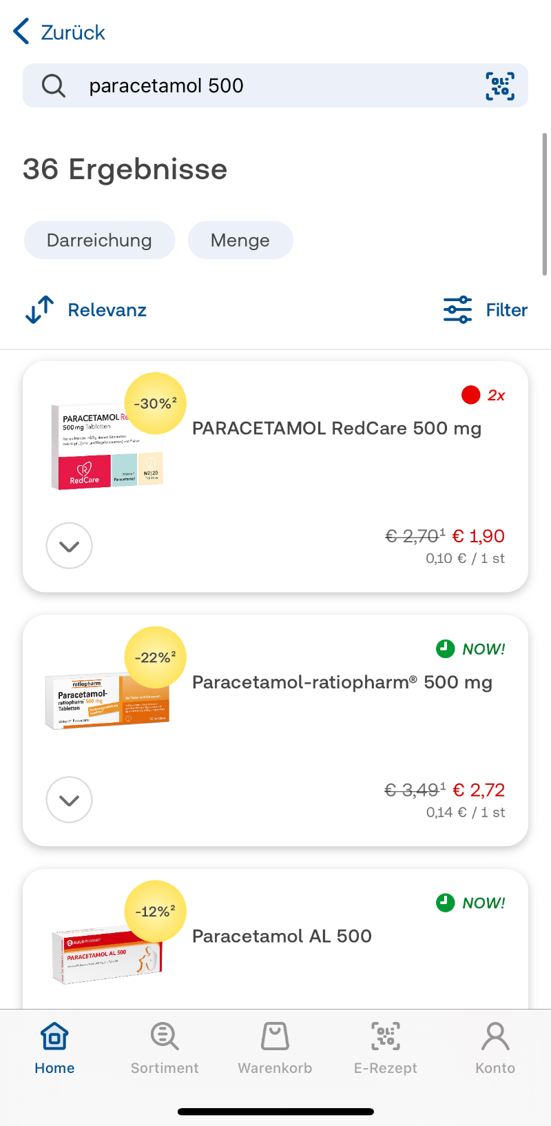 예를 들어 내가 이용하는 Shop Apotheke에서 위와 같이 찾을 수 있다.